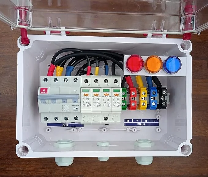 Solar ACDB Box Three Phase 63A, Inbuilt AC MCB 63A, AC SPD 320V & Indicator (05kW - 27kW)